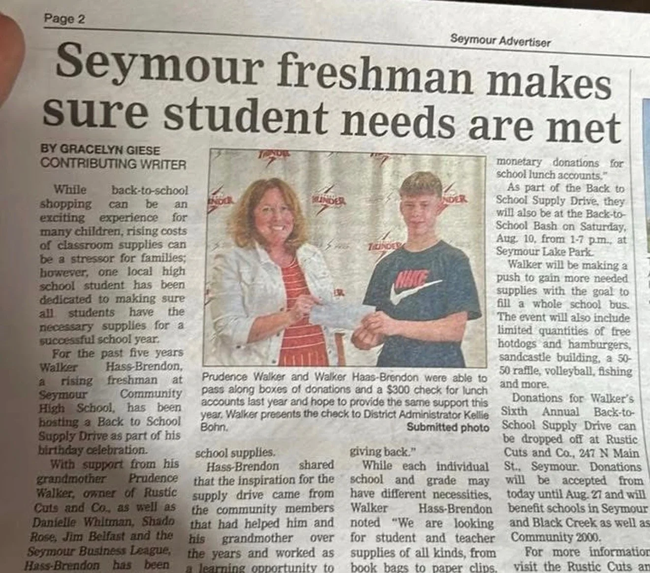 2026 marks eight years of teaming up with the Seymour Assembly of God church to bring school supplies into the district!